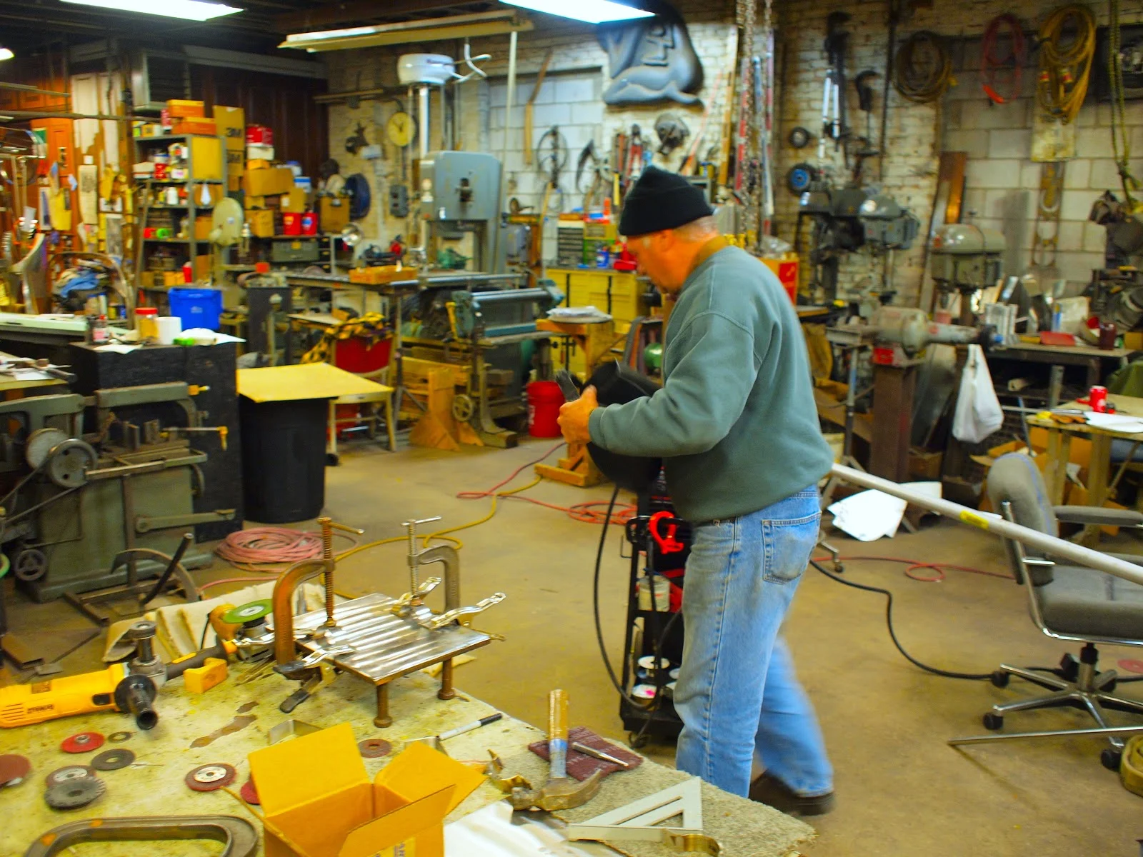 This is seamanship - fabricating Arcturus' new centerboard lifting mechanism with sculptor Rodney Carroll in his Baltimore studio.