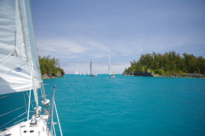Ni som har följt oss har sakert undrat: varför är Kinship sa himla mycket mer norrut än de andra bågarna? Innan vi seglade ut från Bermuda kollade vi in väder och vindar och vi betämde oss ganska så snabbt att det var norrut som gällde. Eftersom jorden inte är platt som det ser ut på kartan är avståndet inte så mycket längare än om man skulle köra en rak linje. Vi gjorde ett bra val och hade vindar med oss nästan hela tiden. När vi satt med 20 kt bakom oss rapporterade båtarna längre söderut att de inte hade någon vind och körde motor. Vi tycker om att segla och gjorde rätt val, även om det såg lite knepigt ut.