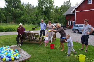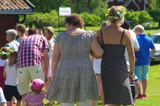 Midsommar firades nere vi Frösthults Bygdegård, jag ville att Andys första midsomamr i Sverige skulle vara som jag upplevt det när jag var mindre. Kärran lövades, vi band kransar och sedan bar det av ner till bygdegården.