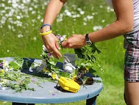 Mamma och jag hjälptes åt att binda de fina kransarna (jag blev dock tillrättasagt av en liten flicka som tyckte att jag hade fuskat som hade snöre i min.. jaja)!
