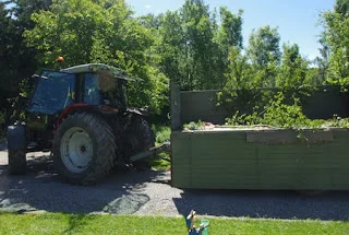 Andy, pappa o Emil hjälptes åt att löva kärran och traktorn.