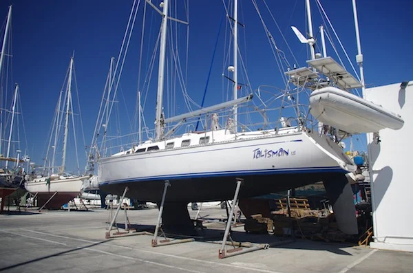 Talisman, vår systerbåt över Atlanten. Hon står på land nu i Lagos.