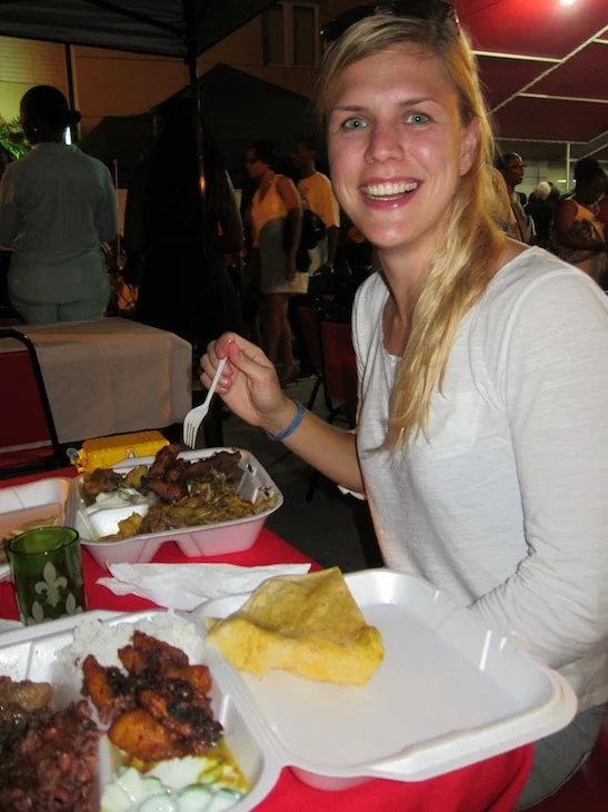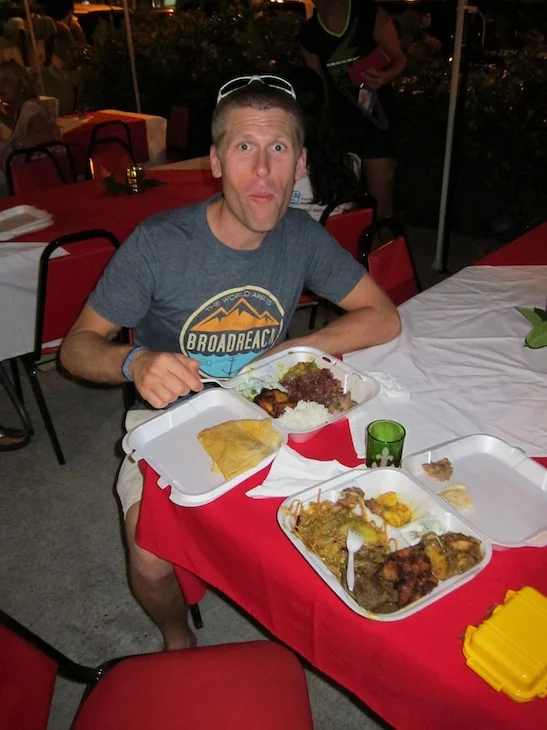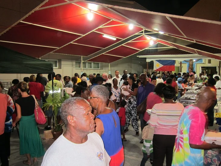 Fredagen var officiellt sista dagen på eventet men vi stannade i Nanny Cay till söndagen då vi flyttade ombord på Dennis båt Sojourner för att segla söderut. På lördagen gjorde vi ytterst lite, jag var helt slut och ett dopp i havet och poolen var ungefär det jag orkade med.Till kvällen åkte vi in till Road Town för att äta middag. Vi frågade vår kompis Brian om det finns något bra indiskt ställe och efter lite funderade kom han på att ”Hurry hurry come for curry” var just ikväll. En av kyrkorna i stan organiserade detta, vi betalde 15 dollar och fick sju ”matbiljetter”. Sedan var det massa olika matstånd vi kunde välja mellan, och varje rätt ”kostade” en biljett. Det organiserat efter länder och öar. Jag kan meddela att vi båda rullade därifrån och det var längesen jag åt så god mat! Mumma!