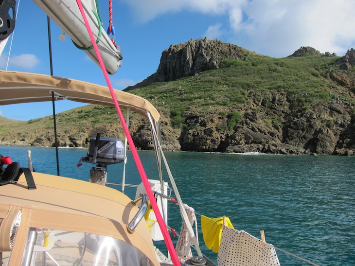 I söndags seglade vi ut från BVI, efter att ha kollat vädret såg det ut som att det skullebli en lugn natt och kanske till och med vara tvungna att gå för motor. Lagom efter att det blivit mörkt blåste det upp, jag blev sjösjuk och det släppte inte under hela natten, jag sov i sittbrunnen och fick saltvatten varvat med regn över mig, men det var inte en chans att jag kunde gå ner och sova! En ganska så tuff natt med andra ord! Vid tio la vi äntligen ankare i Ile Fource, en av mina favoritöar här nere. Den tillhör St. Barth men är helt annorlunda. Ingen bor här, ingen växtlighet utan bara stenar.